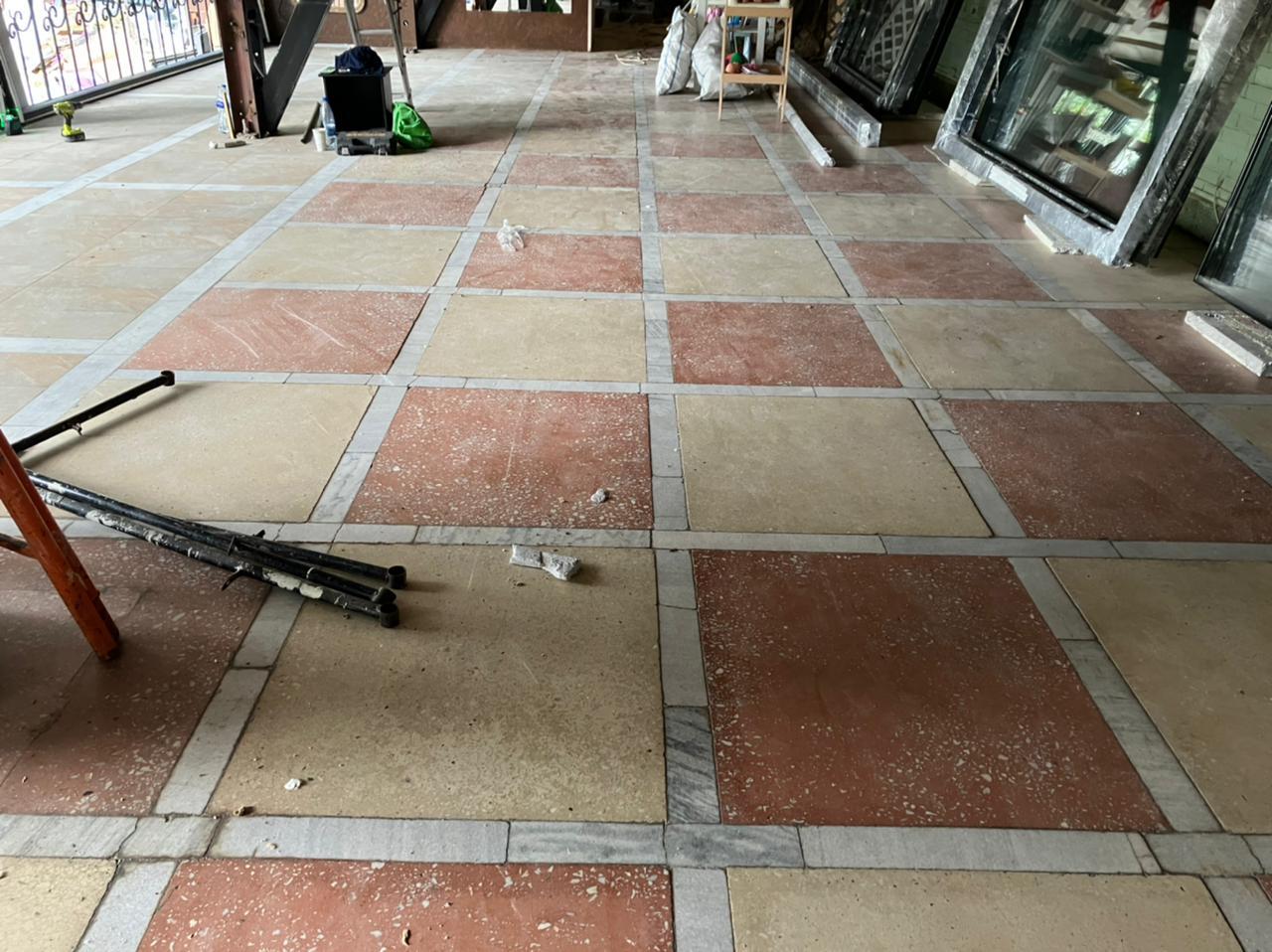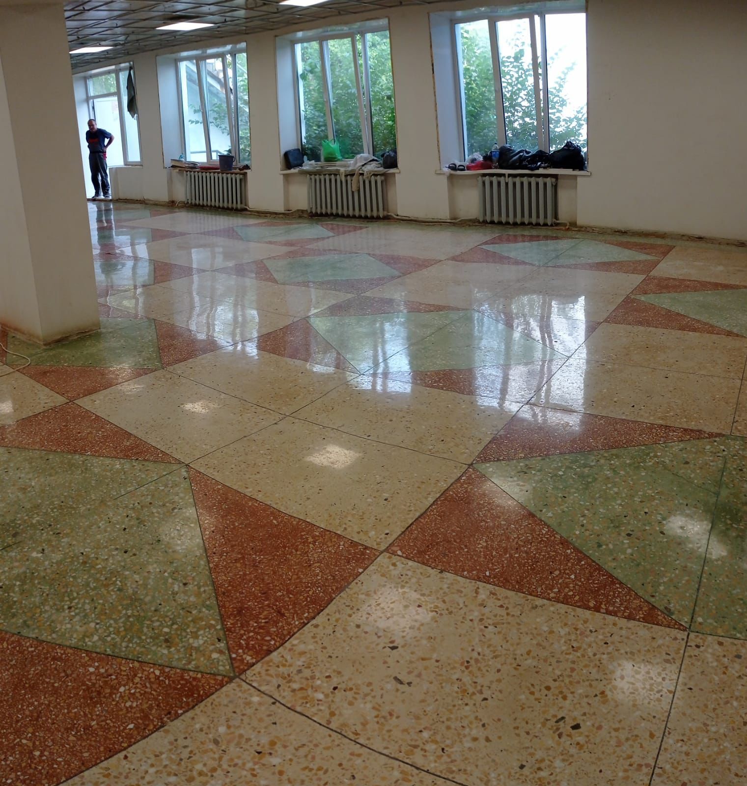 Прежде, чем начинать работу, покрытие тщательно осматривают. Вполне возможно, что в процессе эксплуатации кое-где появились глубокие трещины и сколы. Их следует заполнить специальными ремонтными составами для камня. Затем моют поверхность с подходящим для камня моющим средством(это нужно сделать в любом случае, даже если заделка трещин не выполнялась).Ждут, пока пол полностью высохнет и только потом приступают к шлифовке.